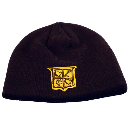 One size fits all acrylic beanie with front patch. Patch is embroidered in black on gold fabric and features the Legend of Zelda crest design. Back has embroidered Nintendo logo. Will stretch to fit most heads.